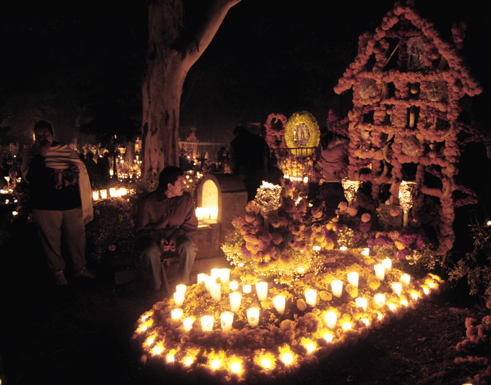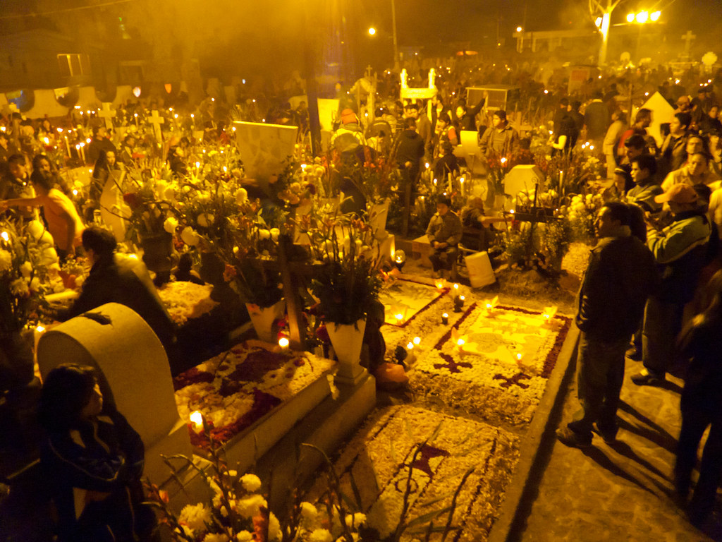 Pátzcuaro:位於墨西哥市西方約360公里處。當地鄉下的原住民會聚集在帕茲卡羅湖畔,划獨木舟到湖中小島,每艘獨木舟的船頭都點著一支蠟燭,並在小島山的原住民墓園守夜。