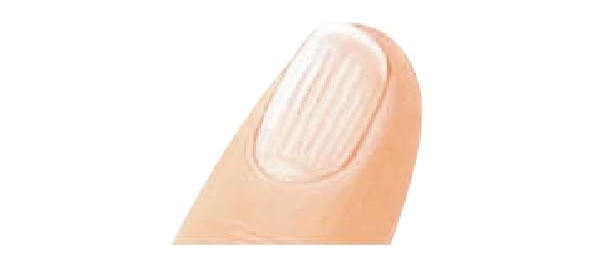 因老化或營養不良所引起,指甲表面有一條條的棱線紋路(直向或橫向都算),且不平整,摸起來凹凸不平。