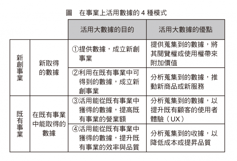 那麼,想要導向事業上的成果,有哪些活用數據的策略可供參考呢?觀察各式各樣的事例後,大致上可以分類出4種模式。