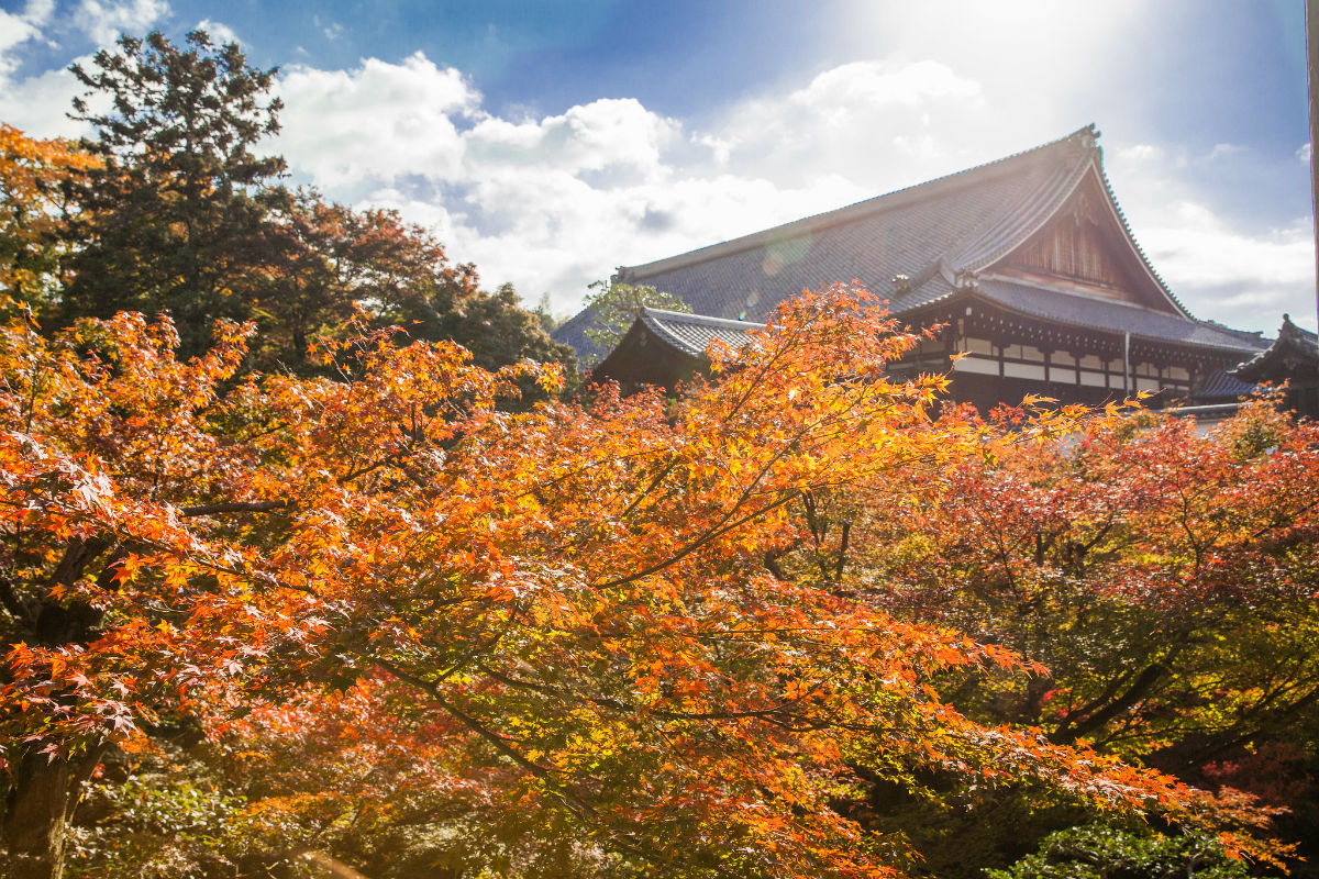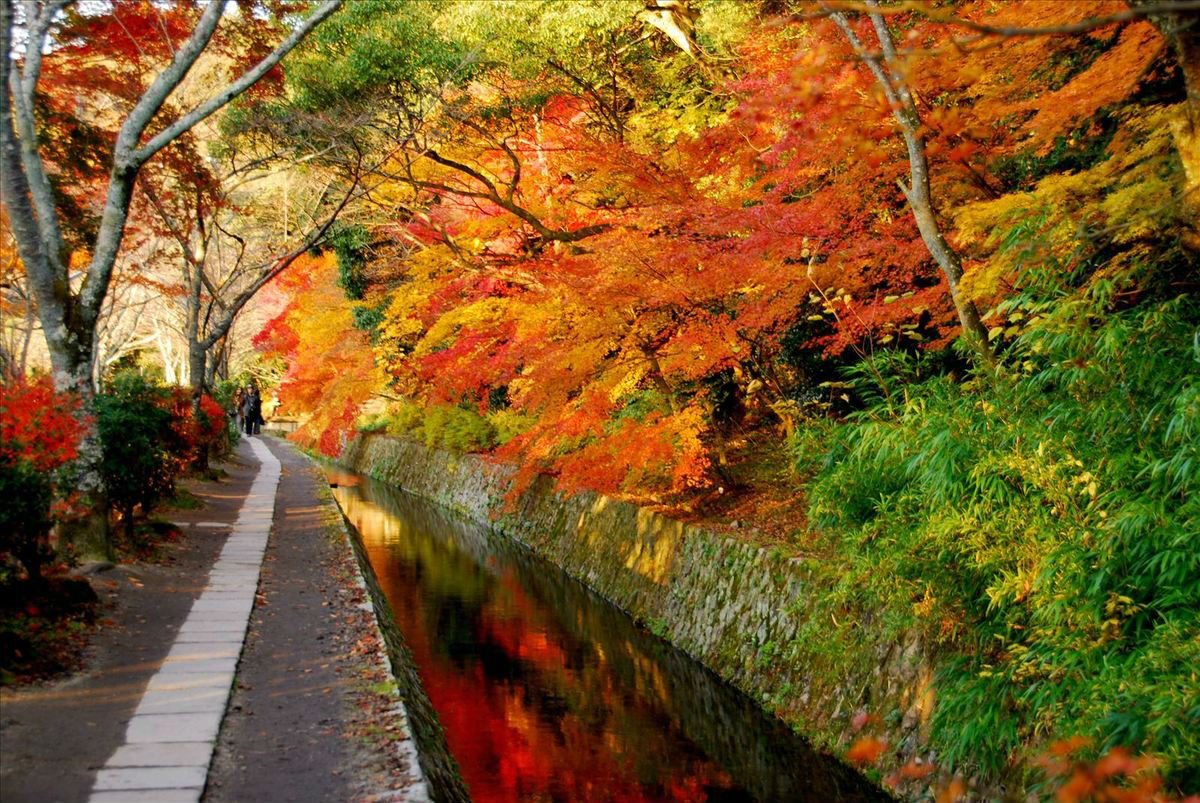從古代開始就是十分受文人喜愛的賞楓景點,古今和歌集中也有出現關於永觀堂的楓葉美景。來到永觀堂一定要欣賞「放生池」,池中倒映著楓樹與極樂橋的影子,彷彿拓印下另一幅美景。而另一個必看景色就是多寶塔,不管是從地面看楓樹包圍著多寶塔,或是登上寶塔俯瞰而下,皆能感受不一樣的楓葉之美。