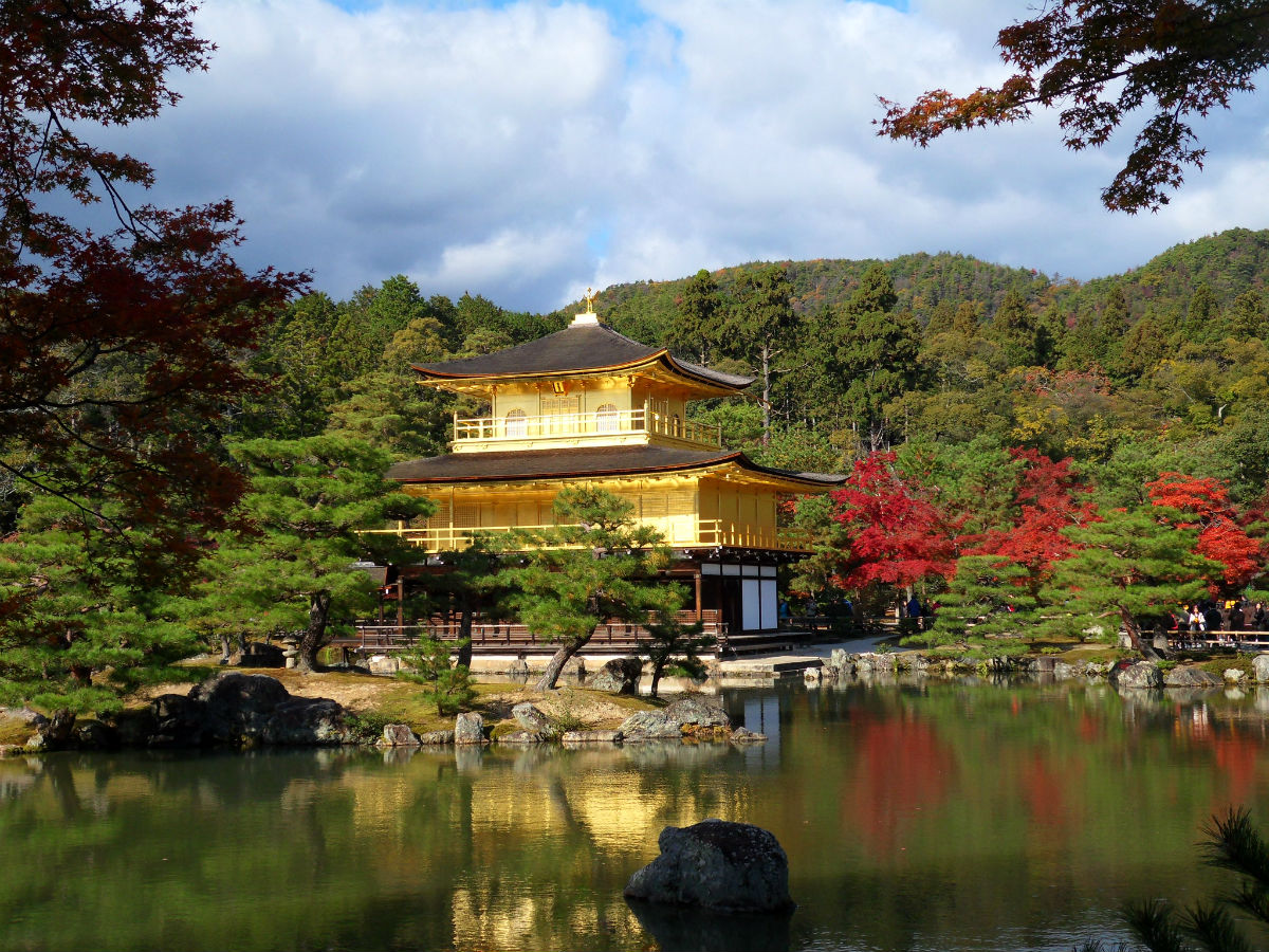 京都又眾多歷史古蹟,金閣寺是到訪京都必去的景點之一。在傳統的庭園中,欣賞金碧輝煌的樓閣,搭配楓紅景緻,充滿了濃厚的日式風格,讓到訪的旅客都忍不住停留下腳步再三觀賞。