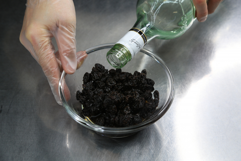 - 將葡萄乾用蘭姆酒浸泡約15分鐘後瀝乾。(圖A01 016A3772)
