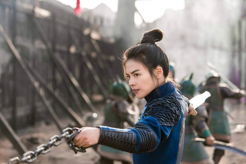 這回她再次挑戰自我,扮演女將軍葉昭,更是讓粉絲們充滿了期待。雖然沒有完全符合小說中所描述的小麥色皮膚和剛毅的臉型,但英姿颯爽的扮相,兩腿叉開的坐姿,大碗喝酒的豪氣,以及騎馬馳騁、揮刀禦敵的招式,把氣概演繹得入木三分,極具將軍捨我其誰的氣勢。