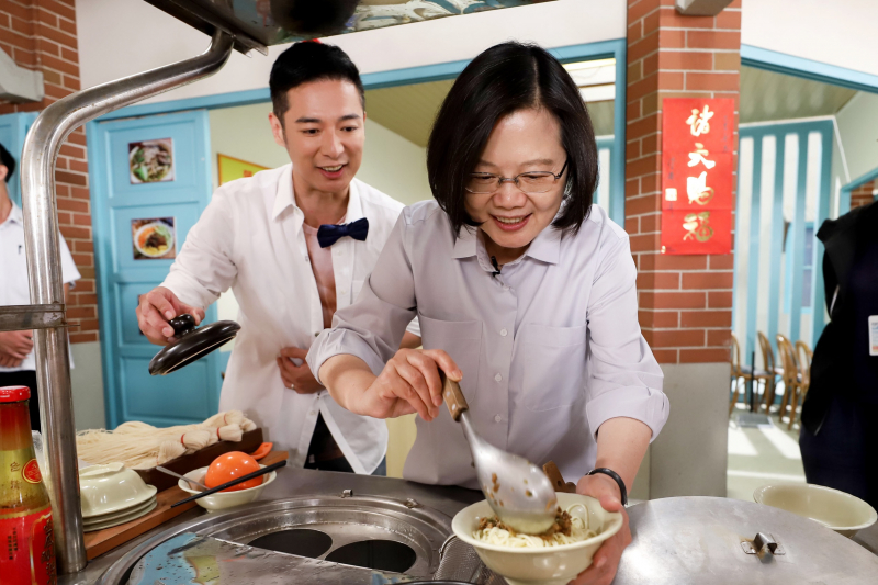 此外,蔡英文總統還探班《大時代》,棚內正演出祝壽橋段,非常熱鬧,飾演麵攤老闆的演員成潤還現場教學,讓蔡英文總統直接化身麵攤老闆娘,三兩下就煮出一碗香噴噴的肉燥陽春麵,當場送給了劇中阿嬤賴青畇,總統驚呼「你們的道具都是真的!」,更驚艷攝影棚裡就矗立一座老街,對《大時代》在攝影棚內搭建出兩層樓高的台灣老街,逼真的台灣生活實景,表達讚賞,證明台灣戲劇節目的製作能力一流,也肯定幕前幕後努力工作的團隊。