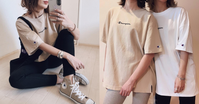 相較於歐美風的穿搭,日本人更喜歡寬鬆的Oversized穿搭,散發出濃濃的慵懶、文青感。而一想到日本,大地色系的顏色馬上浮現眼前,無論是基本色黑、白,相當多日本人穿上這件奶茶色Champion T恤!若怕穿起來很邋遢,下身可以選擇較合身的黑褲或牛仔褲,完全不用擔心屁股大或大腿粗的問題,因為你的Oversized上衣都幫你遮住啦~