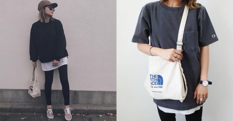 此外,走在日本街頭,除了我們所熟悉的帆布包之外,斜背包更是近期日本人的新寵!無論男女老少,大家都有一個斜背包。尤其The North Face這款Logo斜背帆布包,儂編真的是不斷在部落客穿搭文中,看到它的蹤影!想走文青風的你,不妨也來入手一個吧!