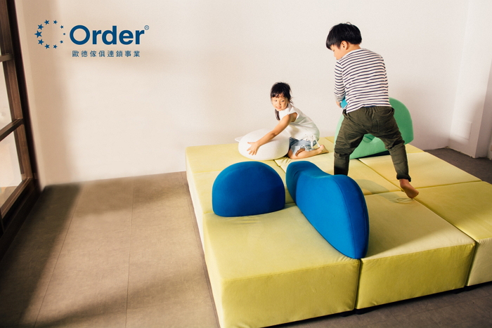 Sofa的結構牢固,孩子們可以安全地在上面翻滾、跳躍,和其他的孩子互動玩耍,孩子們可以在遊戲過程中體驗空間創造,及與其他孩子互動,有效培養孩子們的人際互動及創作素養。