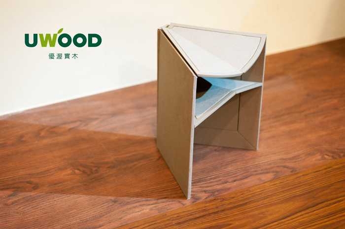 Chair In Shelf採用來自循環人造林的木材和布料兩種異材料的結合,書籍樣貌的外型,人們即可憑直覺的使用Chair In Shelf,翻開“封面”,“書”即自動打開,再輕輕推動支撐結構,即可有全新的舒適體驗,足以充分利用小空間,並享受小空間的趣味。
