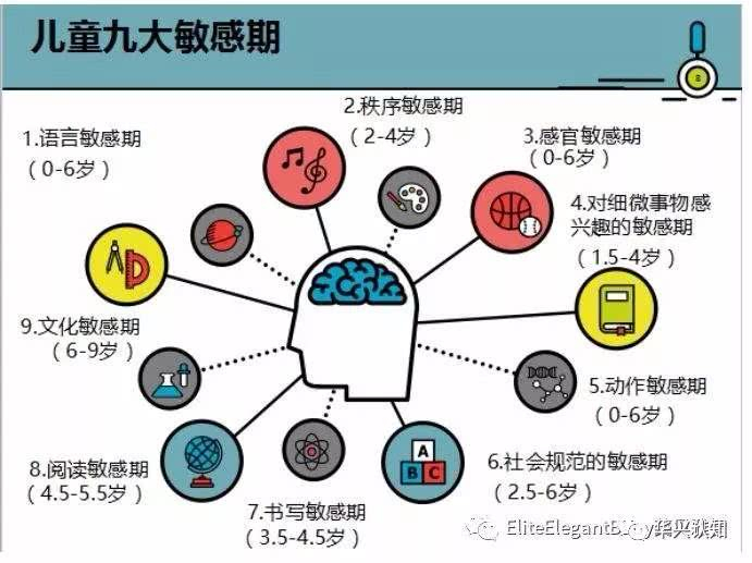 根據蒙特梭利對嬰幼兒敏感期的觀察與研究,孩子的敏感期可歸納出下列九種