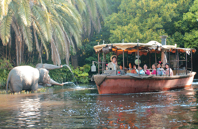 「叢林巡航」位於探險樂園,坐在船上與導覽員一起展開冒險之旅!