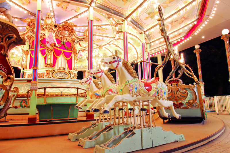旋轉木馬Carousel Eldorado早於1907年在德國製造,然後輾轉從紐約運到日本,有著與別不同的懷舊味道,晚上亮燈後更有Feel!