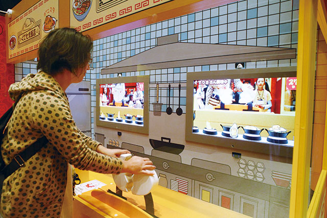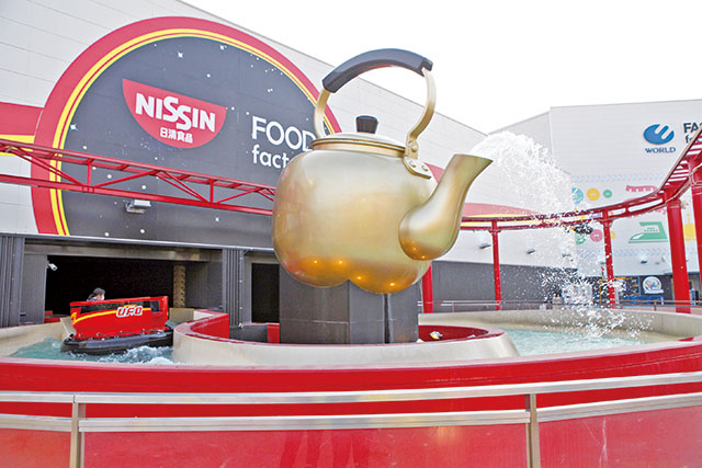 在Splash UFO可乘坐「日清炒麵UFO」沿激流而下了解炒麵的製作過程,還可自製個人化日清炒麵。