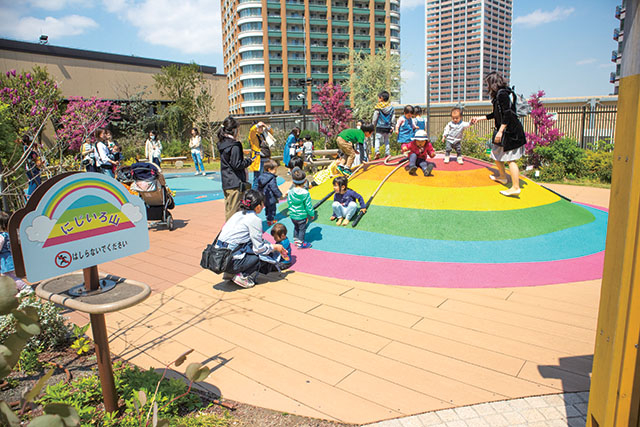 超大型的屋頂公園就位於商場頂樓,由逾8000棵植物及木造的遊玩設施交織而成,綠意盎然的環境就如到了郊外一般。
