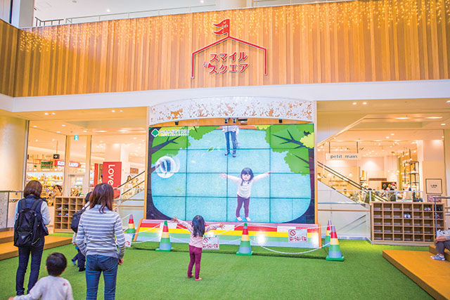 公園樓下的「Smile Square」透過大熒幕讓小朋友與卡通圖案進行互動,是另一放電位。