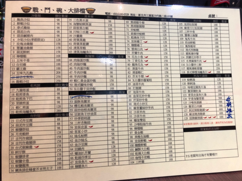 來到三重,說到最出名特色的其中不免提到熱炒文化,吃著大廚唰嘴的下酒菜,再來幾瓶冰涼清爽的啤酒,就算再熱,在騎樓下三五好友於下班後齊聚在一起,訴說著天南地北,有時為了慶祝,有時陪著傷心難過,彼此間的情誼藉著一杯又一杯的黃湯下肚,越來越加深濃厚。