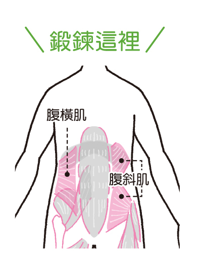 用逆腹式呼吸深吸一大口氣的同時,上半身往左、下半身往右平移,憋住氣保持動作5秒。5秒後讓肚子用力、慢慢吐氣回到動作1。上、下半身平移方向互換,也以同樣方式進行。