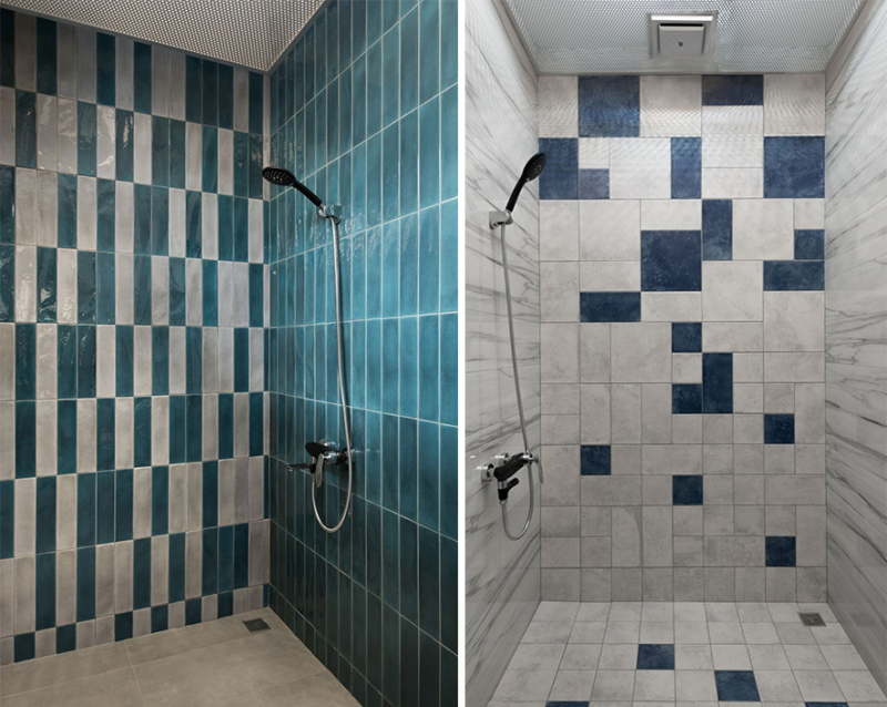 (圖)另外兩間衛浴與前者不同,運用鮮明的幾何元素,創造俄羅斯方塊般的視覺趣味,為洗浴過程增添樂趣。