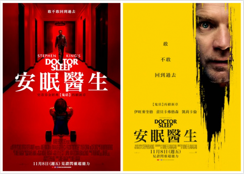 【安眠醫生】最新釋出的兩款電影海報以相當顯眼的經典視覺向【鬼店】致敬,黃色款不僅沿用了當年電影海報的黃色基調,丹尼透過被毀壞的房門望向房內的視線,也復刻最經典的「傑克用斧頭劈開門,從裂縫間窺探」一幕;紅色款則是看到在全景飯店中騎著三輪車的小丹尼,遇上不知為何而回來的長大後丹尼,就在長廊前方向他走過來,海報的副標「敢不敢回到過去」也正呼應著史蒂芬金作品的核心命題:面對自己內心最深層的恐懼,以此正式宣告繼承了影史最經典驚悚電影【鬼店】血脈的【安眠醫生】即將登場!