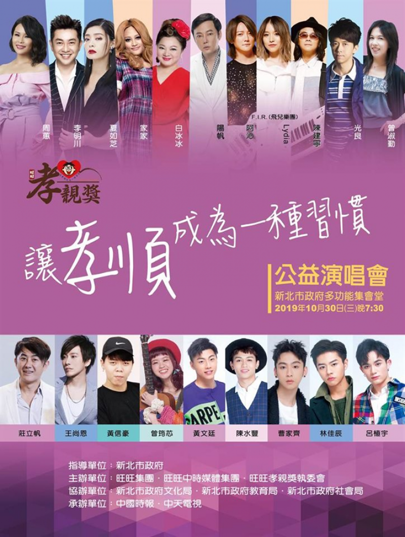 什麼時候,孝順父母變成了口號?什麼時候,總是忘記在父母親最需要關懷的時刻,給他們來一個『愛的抱抱』?為了推動「孝親敬老」社會正能量,旺旺集團、旺旺中時媒體集團聯合新北市政府,將於10月30日(三)晚上19:30假新北市政府三樓多功能集會堂,舉行「讓孝順成為一種習慣」公益演唱會。