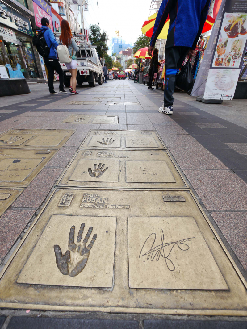 每年秋季舉辦的「釜山國際電影節」乃亞洲最大影展,出席的國際著名電影人都留下手印。
