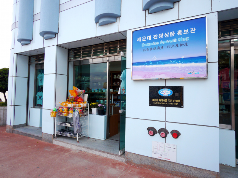 海水浴場觀光中心旁有紀念品販賣店,內有一系列海雲台風景精品,乃韓國情侶的人氣手信。各₩5,000