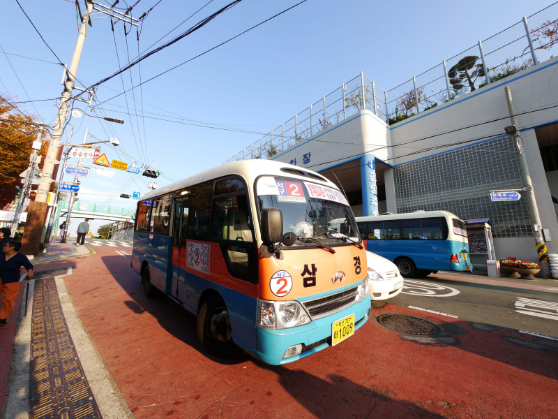 由於往甘川洞的山路相當狹窄,故2號公車採用小型巴士。
