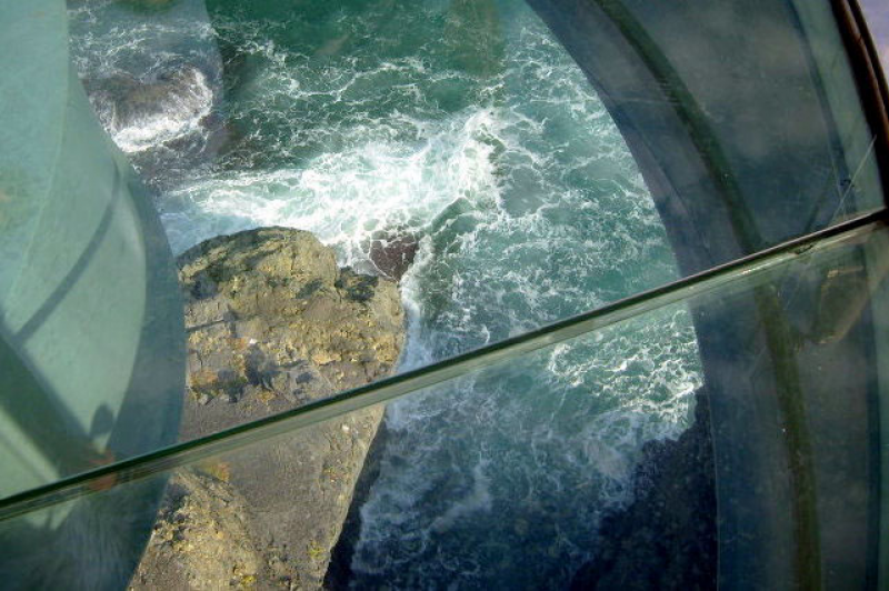 全長15公尺的玻璃步道,用55.49mm厚的高荷重防彈玻璃製做,可遙望旁邊的五六島。