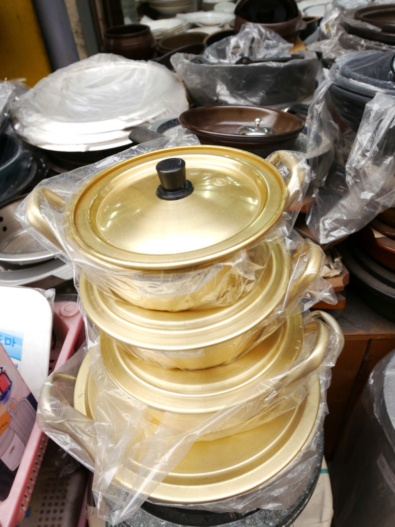 韓國人廚房必備的即食麵銅鍋,有不同size選擇,最平的只售₩2,000。