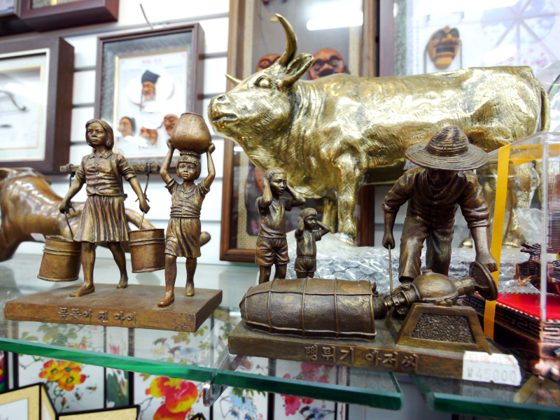 店內也有不少了傳統工藝品,包括這「四十階段文化觀光主題街」的迷你銅雕。各₩45,000