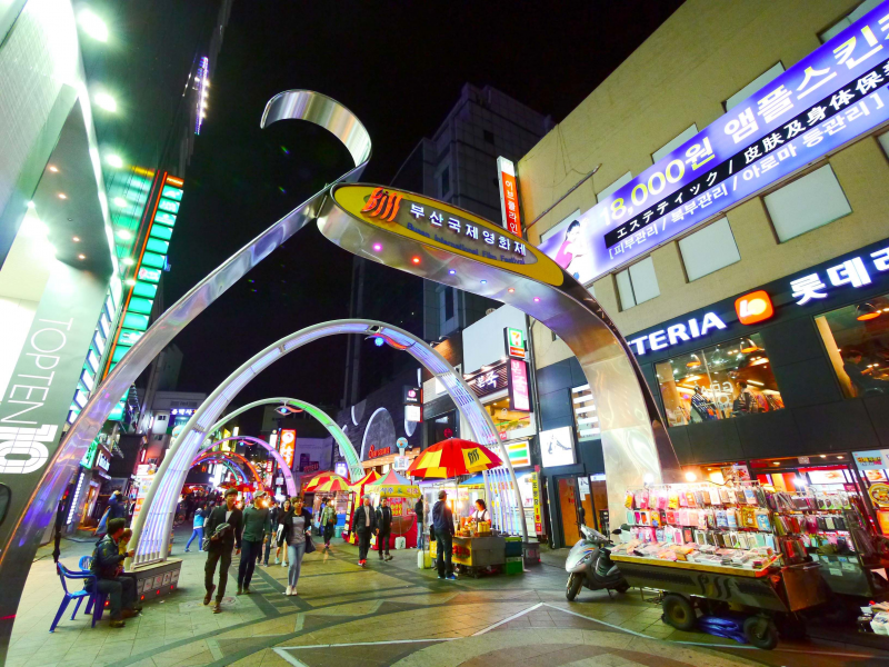 釜山市著名的「劇場街」,從南浦洞Fuyuong劇場到忠武洞陸橋為止、短短428公尺長的街道,自60年代起聚集20多個大小劇場,現在則開滿大型電影院。1996年起逢秋季舉辦的「釜山國際電影節」(BIFF)更令它聞名國際,地上還留有近50位國際著名電影人及明星的手印,包括法國導演Luc Besson 、日本導演北野武、香港導演徐克等。