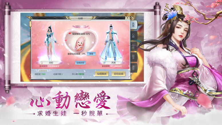 在家靠父母,出外靠朋友,玩家不只可以在遊戲中結伴冒險,還能與來自五湖四海的玩家們相識相知,進一步互生情愫喜結良緣,在浪漫仙境中一起暢遊天地,成為令人稱羡的神仙伴侶。