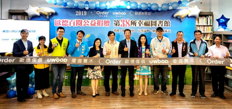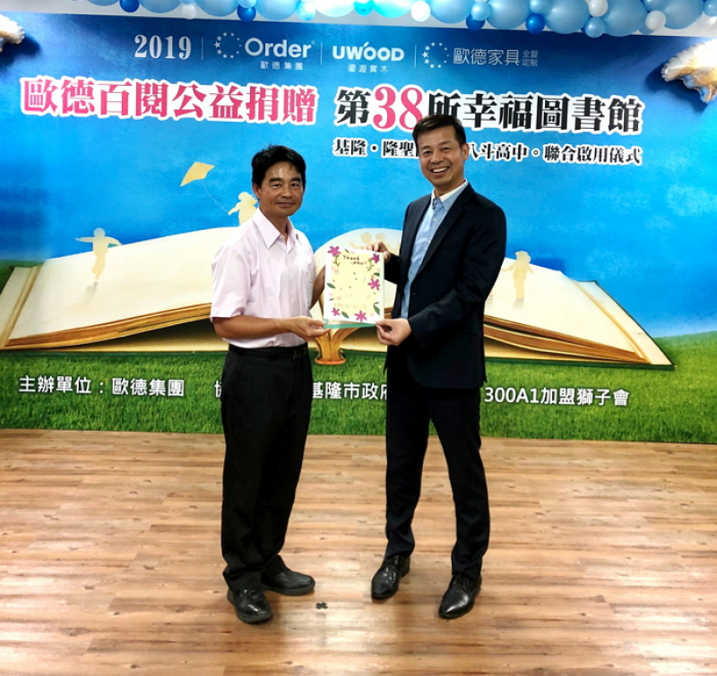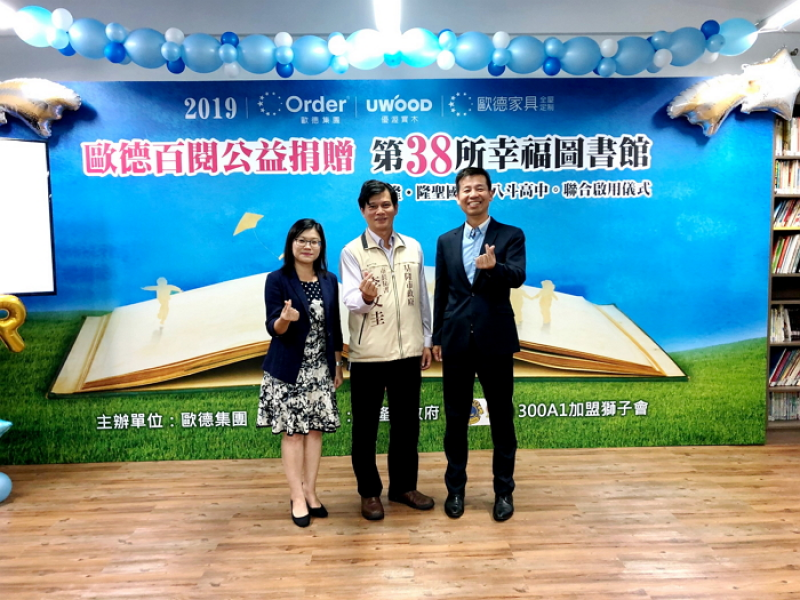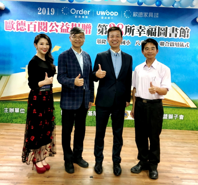 甫獲得2019美國IDEA工業設計優秀獎肯定的台灣家居業領導品牌歐德集團,善盡企業社會責任、發揮公益精神,每年捐贈「綠色環保圖書館」,今年來到了基隆市的八斗高中及隆聖國小,10月29日歡慶啟用典禮,成為歐德集團第38座以環保綠建材為主的「幸福圖書館」,讓更多孩子「閱讀悅幸福」。歐德集團陳國都董事長、基隆市教育處陳淑貞代理處長、基隆市市長秘書李文圭、國際獅子會300A1區蘇文玉總監、張淵翔議員等多位貴賓蒞臨圖書館啟用儀式,八斗高中、隆聖國小分別以原住民舞蹈與陶笛表演喜迎圖書館落成。