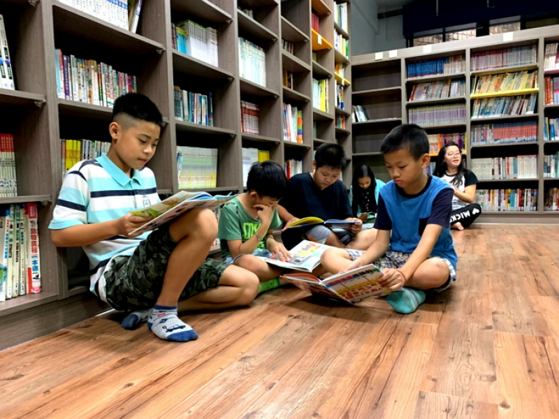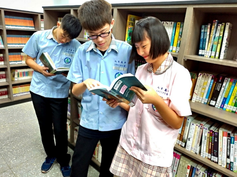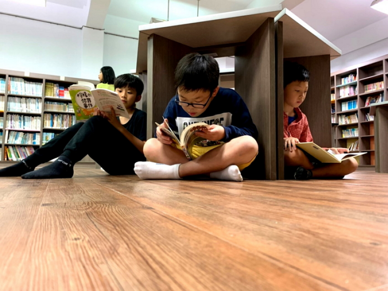 ▲八斗高中學生們沈浸在歐德集團以環保健康綠建材打造的「幸福圖書館」,快樂閱讀。