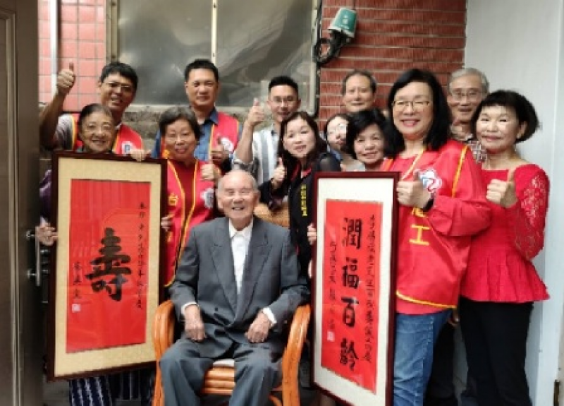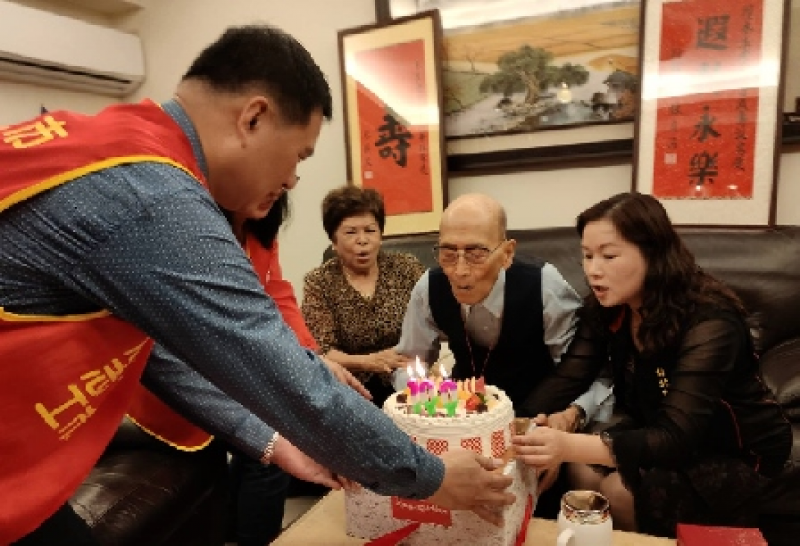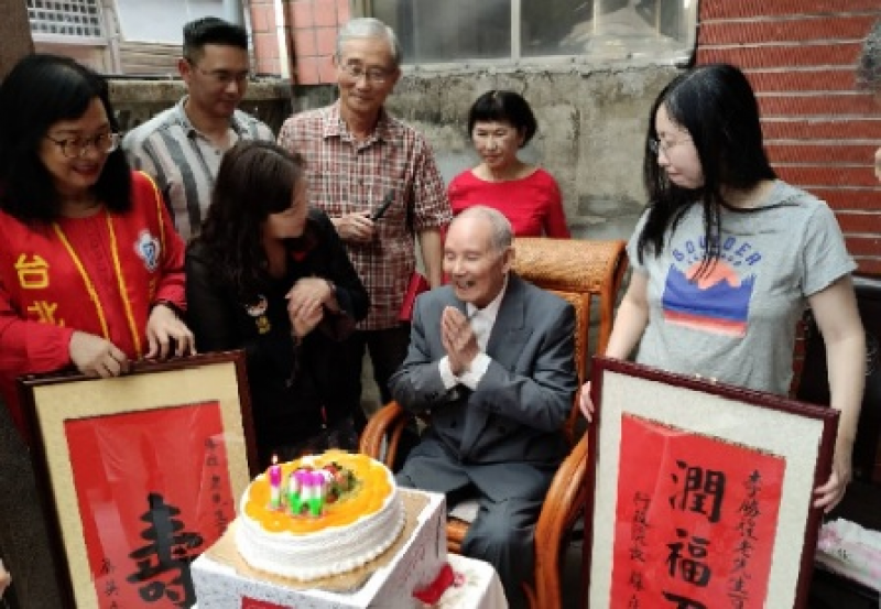 李伯伯廣東省人,陸軍上尉退伍,自軍中退役後與婚後妻子一同在社會上辛勞奮鬥創造自己的美好人生與經營幸福美滿的家庭,孫子也參加百歲慶生向爺爺祝壽,親情流露令人羨慕。當地里長也一起和榮服處同仁齊聚給李伯伯賀壽,場面溫馨動容。另一位翟伯伯同為廣東省人,曾經獲頒抗戰紀念章榮耀,現與女兒同住並有外籍看護照顧生活起居,生活簡單與人和善及樂觀是其高壽的保健方法,翟伯伯還傳授在場祝壽社區主委、社區總幹事與榮服處等人一套絕學養生氣功,這是伯伯每日自我體能訓練的功課,希望大家有空多多練習,未來能與他一樣高壽。