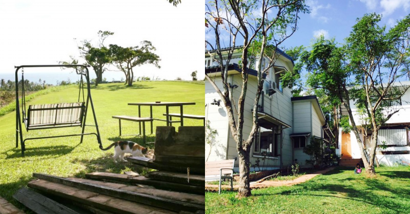 綠油油的草坪上,樹下擺幾張躺椅,這間《南八里》民宿在都蘭灣北面海拔約90∼110公尺的山山上,雖然山高但也擁有獨特隱密位子,絕對是坐看海灣美景的好去處。坐在樹蔭下乘涼往眺望,湛藍無邊界的大海絕對會讓你「哇——」的一聲看呆!綠島、蘭嶼都成了海上凝固的波浪般。除了眼前海景,民宿後面還有小池塘、步道可以讓你散心,入夜後在草地上喝點小酒、看星,躺著放空就是最奢侈的享受。