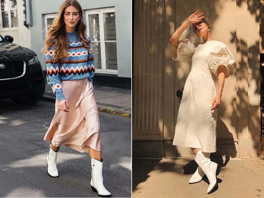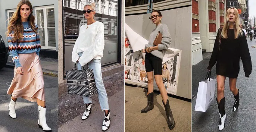 最普通不過的毛衣+丹寧褲,有了一雙牛仔靴立刻時髦升級,從街頭路人變潮人,回頭率百分百,隨便拍一張踩街照,都有時裝周街拍的氣勢。