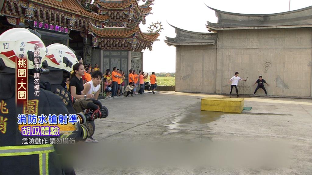 這是由胡瓜主持的外景綜藝節目,這回來到桃園大園,特別邀請消防員推廣火災知識,出了示範射水柱,更要替前陣子因公殉職的消防人員獻上誠摯敬意。