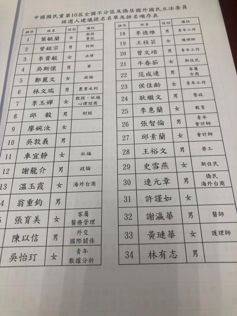 台灣各黨最近都公佈了自己的不分區名單,其中最大在野黨國民黨的部分備受關注,許多人嘲諷是老人名單,黨內意見也十分龐雜,甚至惹哭了黨主席吳敦義。