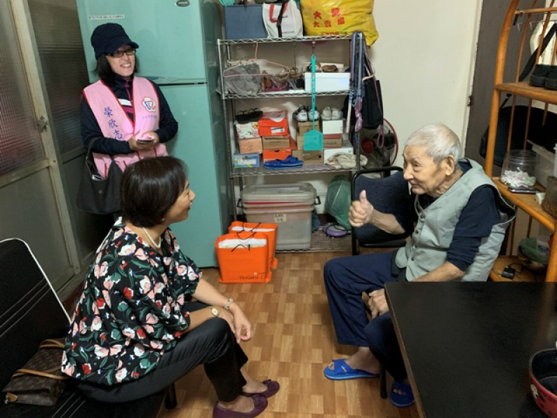 臺北市榮民服務處池玉蘭處長今(14)日上午率輔導員及社區服務組長前往萬華區探視年長獨居特需榮民或雙老榮民眷,關切他們的生活狀況,並贈送營養品慰問。