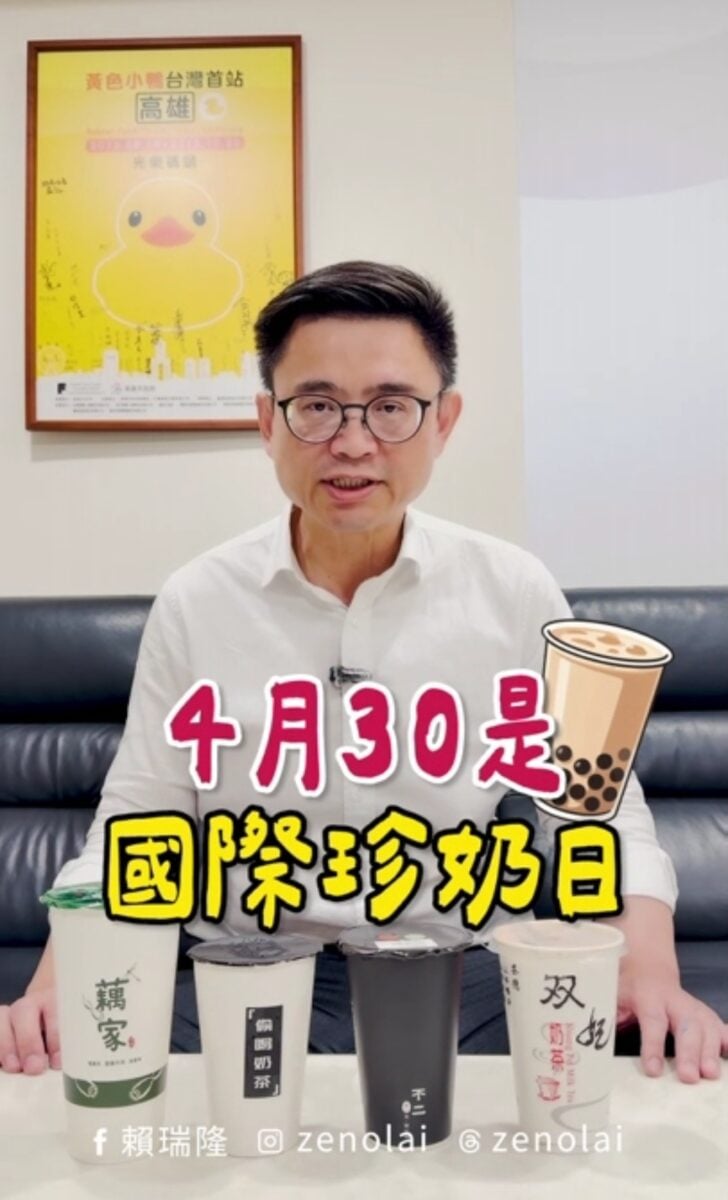 【記者 王苡蘋╱高雄 報導】迎接4月30日國際珍奶日,高雄市長參選人、立委賴瑞隆釋出「珍奶盲測」趣味短片,實際試喝「鹽埕奶茶一條街」四家人氣名店,以生活化方式推廣高雄飲品文化。賴瑞隆表示,一杯珍奶,是城市特色與產業實力的縮影,未來將致力讓更多高雄味被世界看見。
