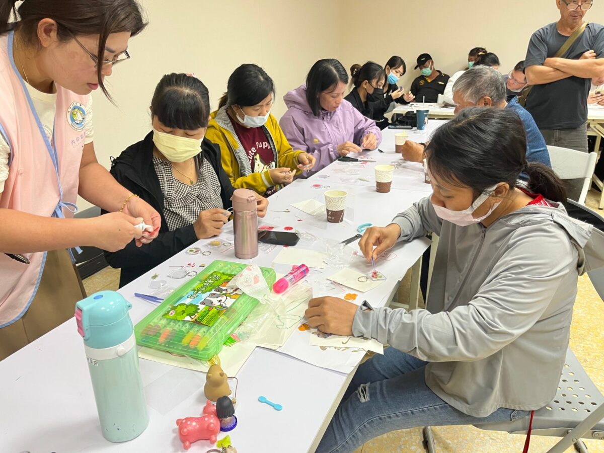 「在印尼,憲法強制規定人民必須有宗教信仰,但在臺灣,人們可以選擇不參與宗教,對於宗教有高度的信仰自由。」聽完蔡佳伸的分享,越南新住民阿江嘖嘖稱奇,直說這樣的文化差異超乎她的想像,也讓她進一步提升對印尼文化的瞭解與尊重。除了分享多元文化外,蔡佳伸也特別安排手作壓花鑰匙圈體驗,運用乾燥花材與簡單工具,將色彩繽紛的花朵細心拼貼於透明鑰匙圈中,經由設計與封存,完成一件獨一無二的作品。也透過創作過程促進夫妻間的互動與合作,讓小小的鑰匙圈成為承載愛與回憶的象徵。