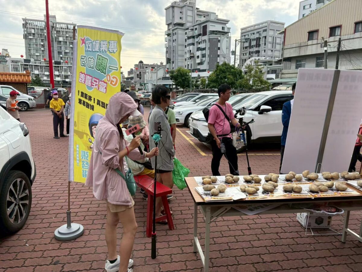 圖:針對近期政府調整美國進口加工用馬鈴薯檢疫標準,引發食安把關疑慮,藍白共推嘉義市長參選人張啓楷今(29)日發起「幸福『薯』於你」活動,偕同多位議員於嘉義市發放本土馬鈴薯,表達對中央放寬發芽馬鈴薯檢疫標準的不滿,呼籲政府應以國人健康為優先,守住邊境食安防線。(記者吳瑞興翻攝)