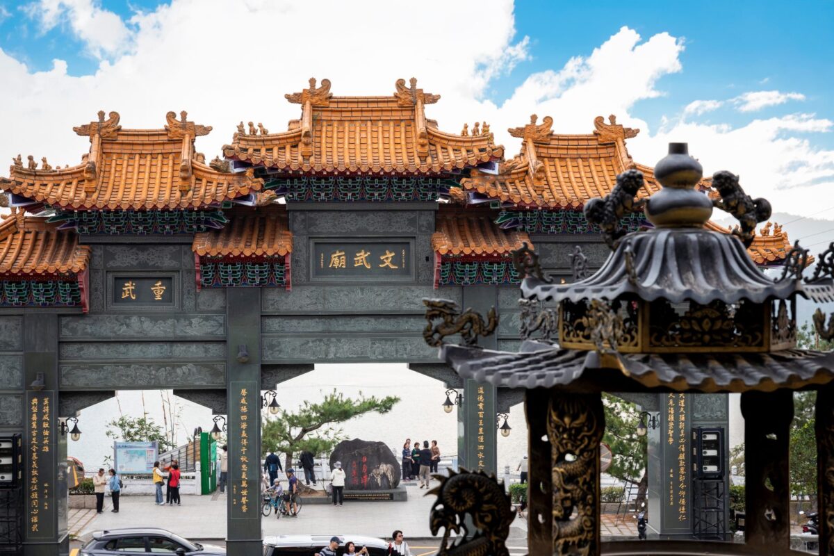 ▲全新開通的「日月潭環湖線」以純電動大客車行駛,串聯水社綜合商場、玄光寺、慈恩塔、伊達邵碼頭及文武廟等重要核心景點。