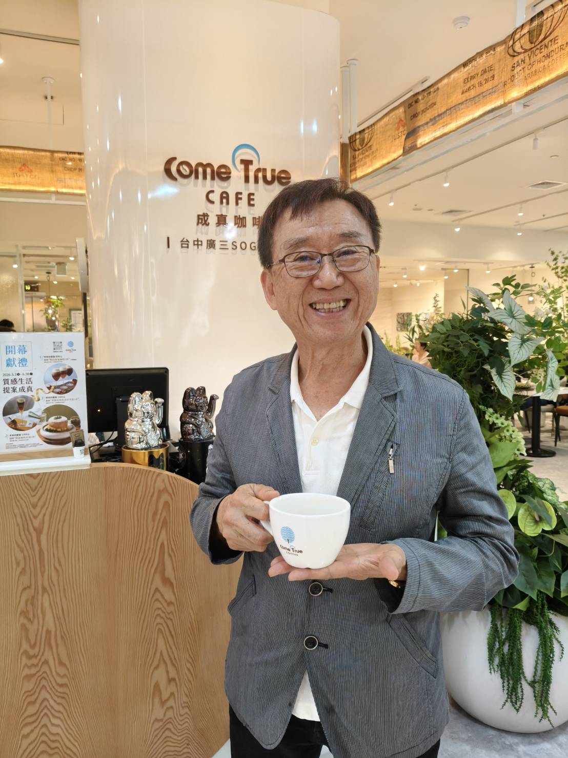 在台灣咖啡市場年飲用量突破40億杯、整體規模上看千億元,廣三SOGO引進台中起家的全日型咖啡品牌「ComeTrue CAFE 成真咖啡」,5月1日正式開幕,導入「餐飲+零售」複合式經營模式,為百貨餐飲再添話題亮點。