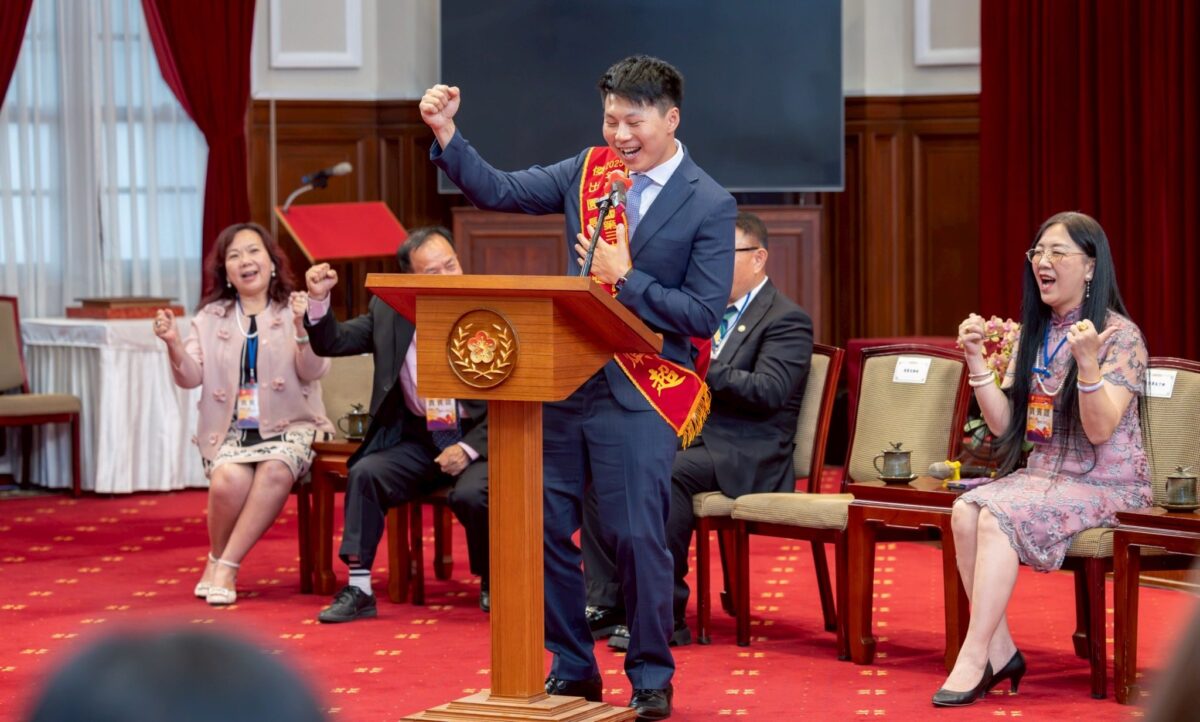 ▲黃煥超於總統府代表得獎者發表演說,分享投身幼教16年的心路歷程與教育信念,現場氣氛動人。
