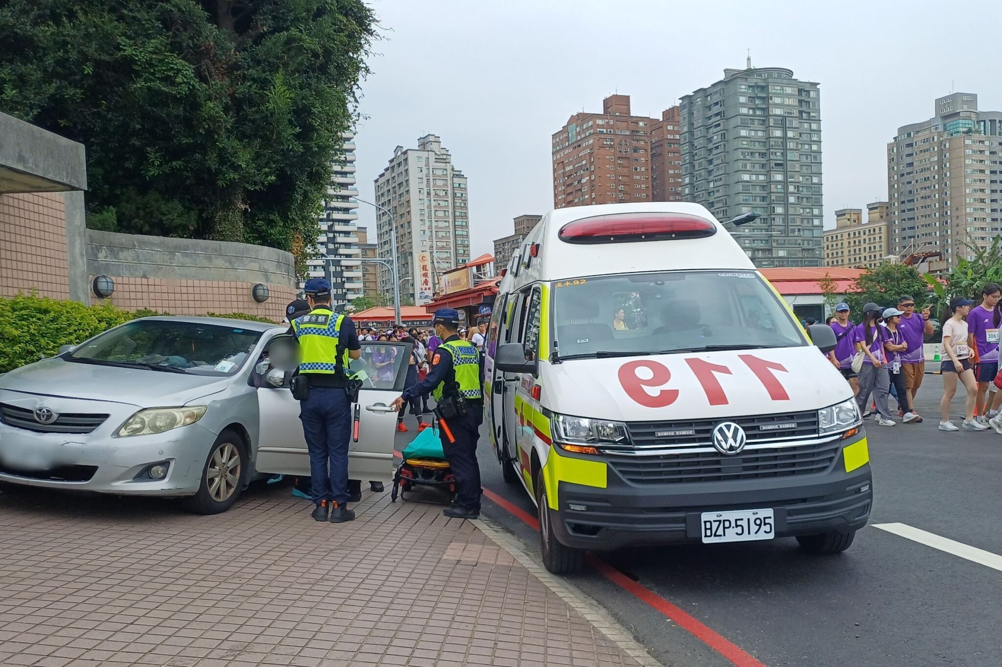 當時負責路跑維安勤務的淡水分局警員林加宸,接獲熱心民眾通報後立即上前關心,發現林翁因跌倒造成頭部受傷,且坐在車內神情昏沉、反應遲緩,面對詢問無法清楚應答,明顯不具安全駕駛能力。考量現場正值路跑民眾集結高峰,若林翁強行開車恐危及現場民眾,林員當機立斷攔阻其駕駛行為並將車輛熄火,同時通報救護人員到場評估。經救護人員檢視,確認林翁身體狀況確實不宜開車,隨即由員警協助送醫診治,並聯繫家屬趕赴醫院照護,成功瓦解一場潛在的交通危機。