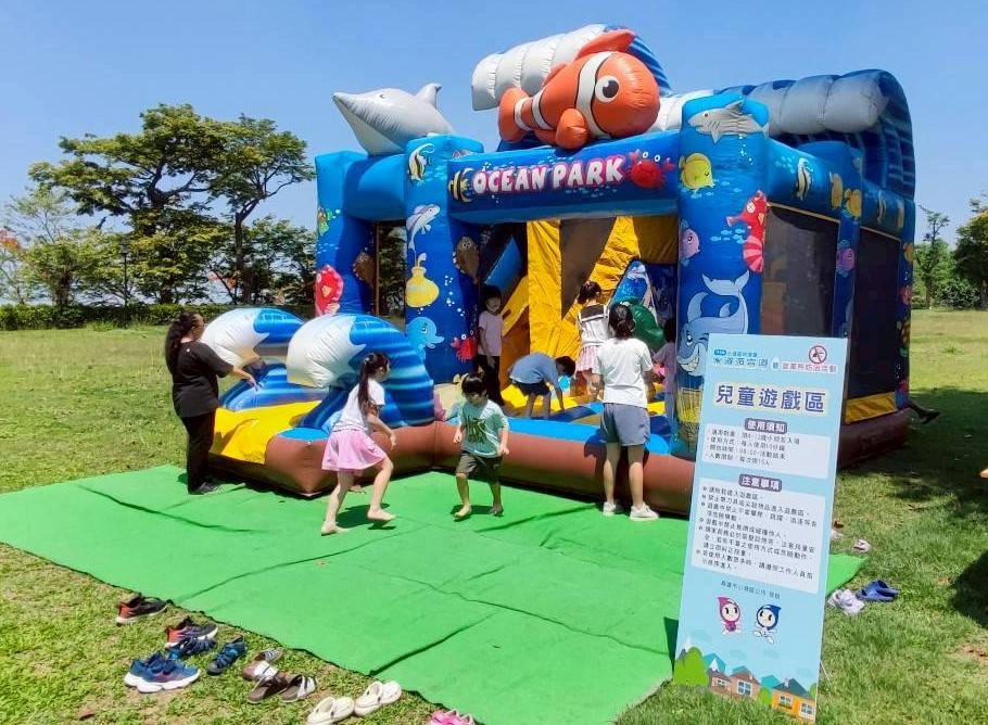 現場設計多項互動遊戲與親子氣墊區,寓教於樂,吸引里民熱情參與。