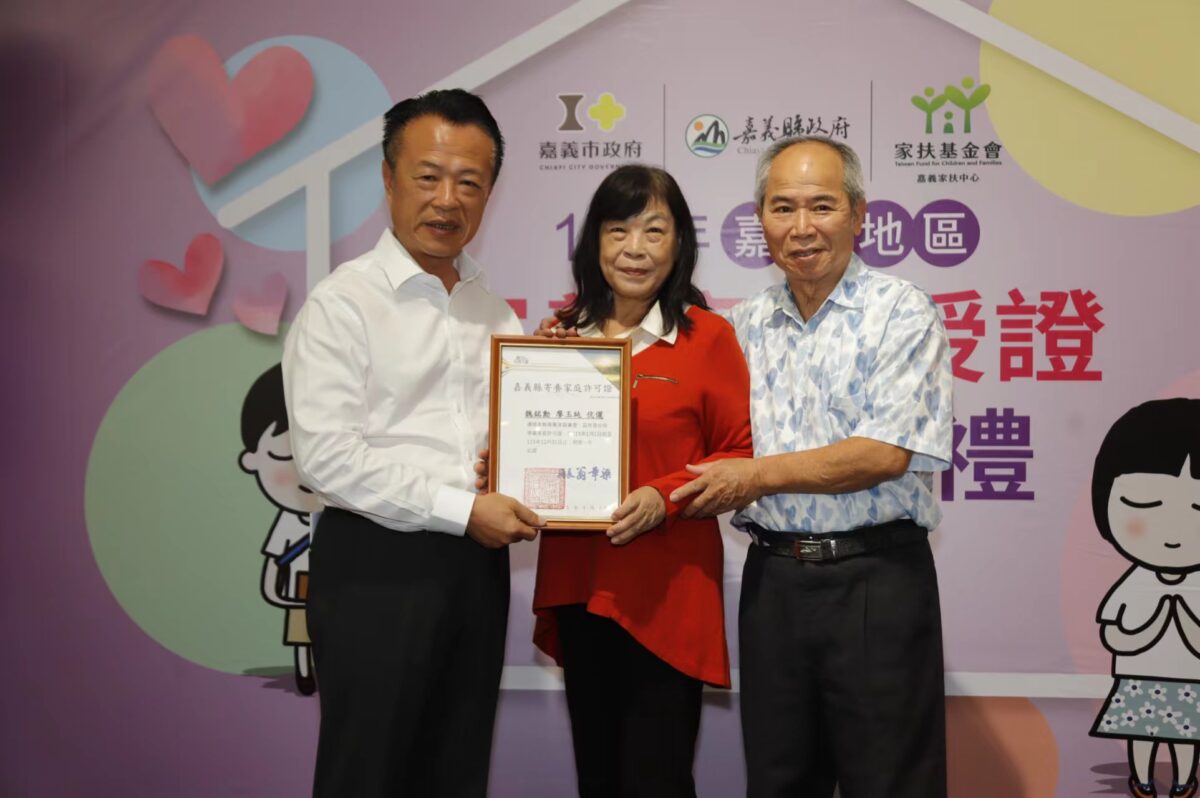 嘉義縣表揚5戶寄養家庭,包括服務滿20年蔡朋達、李昆玲伉儷,15年郭有全、王麗菊伉儷及江明赫、蕭沛晴伉儷;以及10年黃建榮、姚雅萍伉儷與吳定衡、陳婉雅家庭,他們長年投入寄養服務,陪伴多位兒少走過生命低谷,深具典範意義。