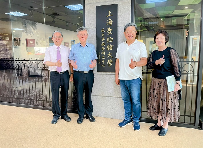 ▲楊慶煜校長(右二)與曾鴻鍊執行董事(左二)實地參觀上海聖約翰大學校史典藏暨研究中心(約史中心),深入了解上海聖約翰大學、新埔工專至聖約翰科大的悠久歷史底蘊。