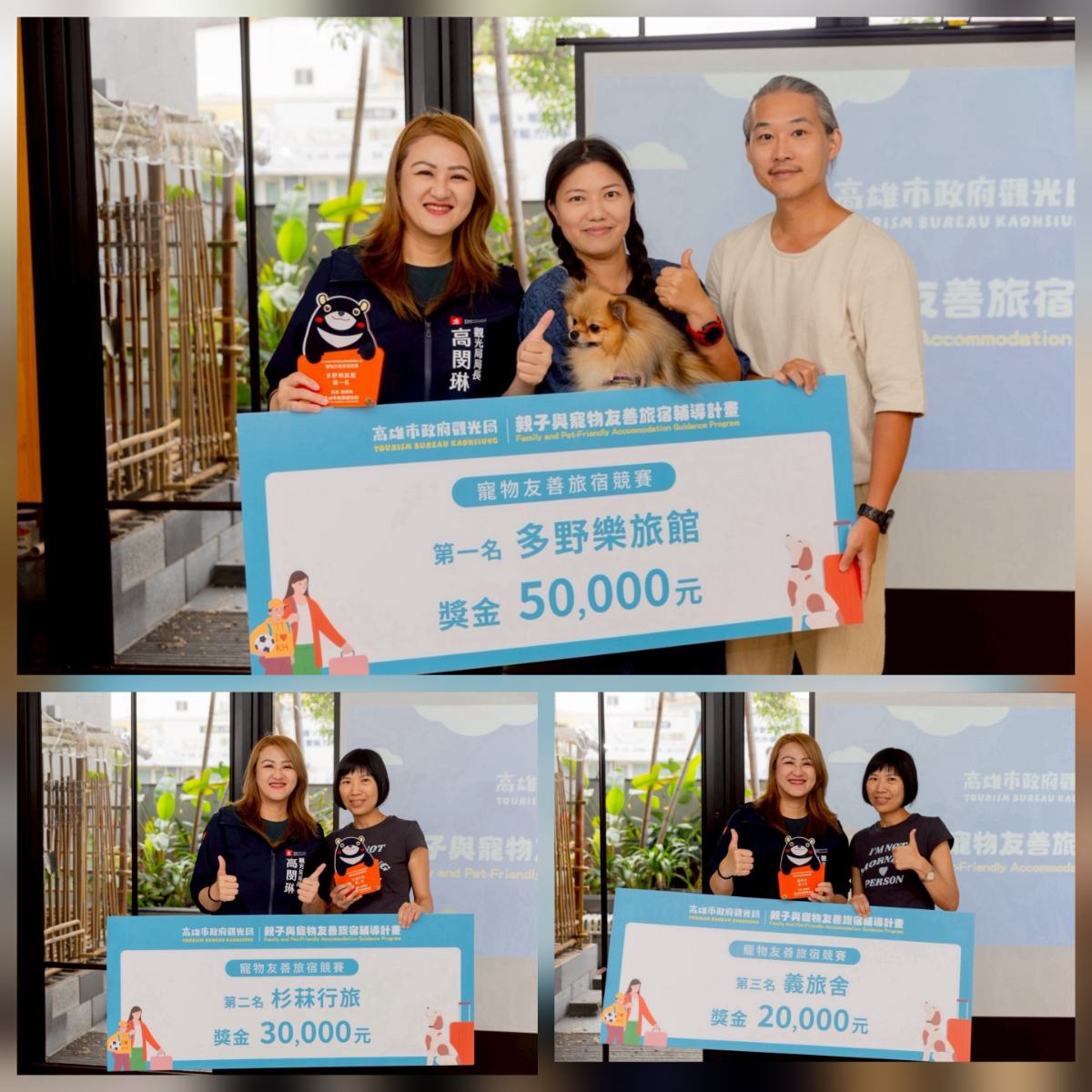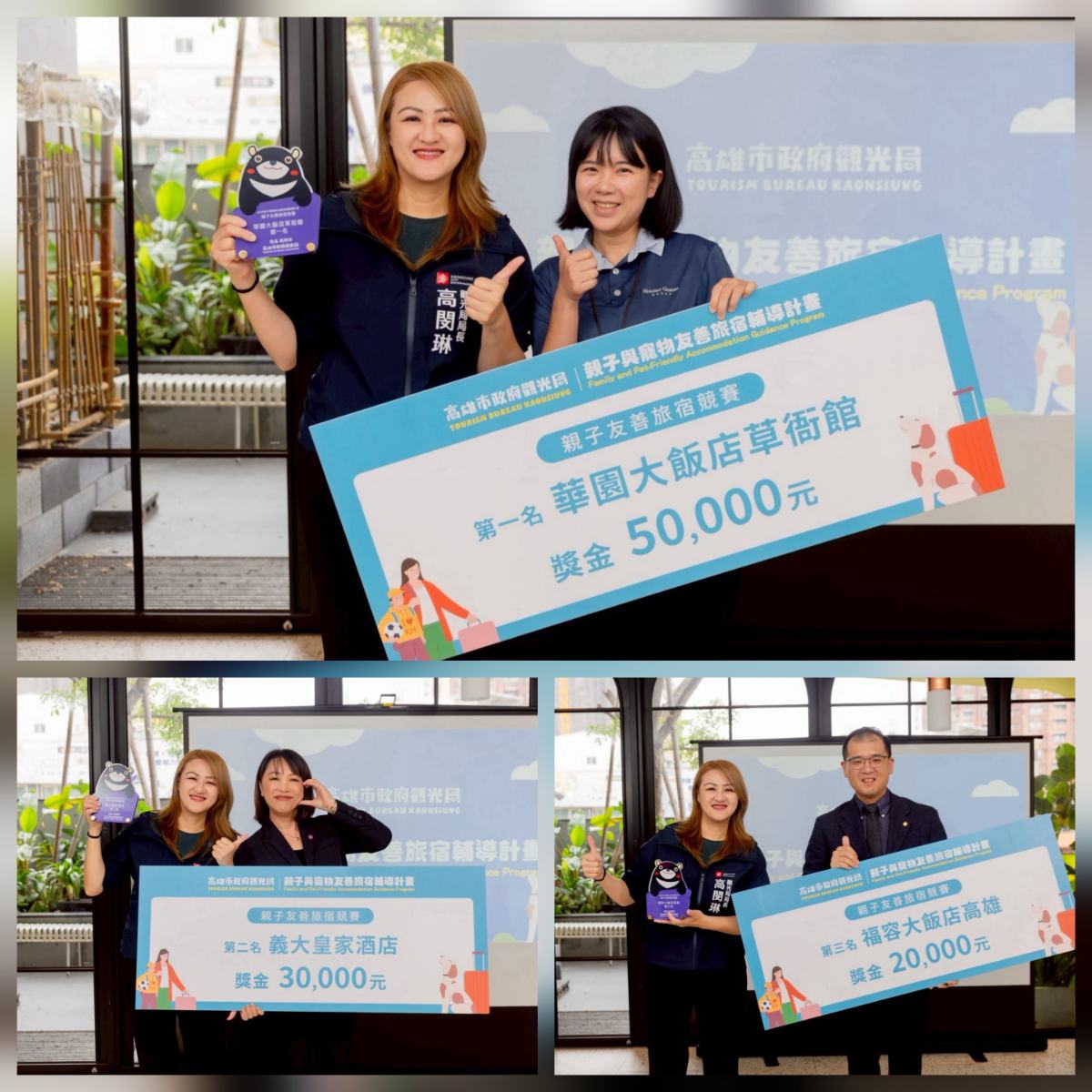 【記者 王苡蘋/高雄 報導】因應家庭親子旅遊與人寵共遊風潮持續升溫,提升旅宿業接待能力與服務品質,高雄市政府觀光局去年起推動「2025高雄市親子與寵物友善旅宿輔導計畫」,透過專家輔導與競賽評比機制,共輔導15家親子友善旅宿及10家寵物友善旅宿。昨(4/16)舉辦成果發表會並公布評比結果:親子友善旅宿由「華園大飯店」草衙館榮獲第一名,「義大皇家酒店」第二名,「福容大飯店」高雄第三名;寵物友善旅宿則由「多野樂旅館」奪得第一名,「杉菻行旅」第二名,「義旅舍」第三名。前三名業者分別獲頒新臺幣5萬元、3萬元及2萬元獎金,以肯定其打造友善住宿環境的優異表現。